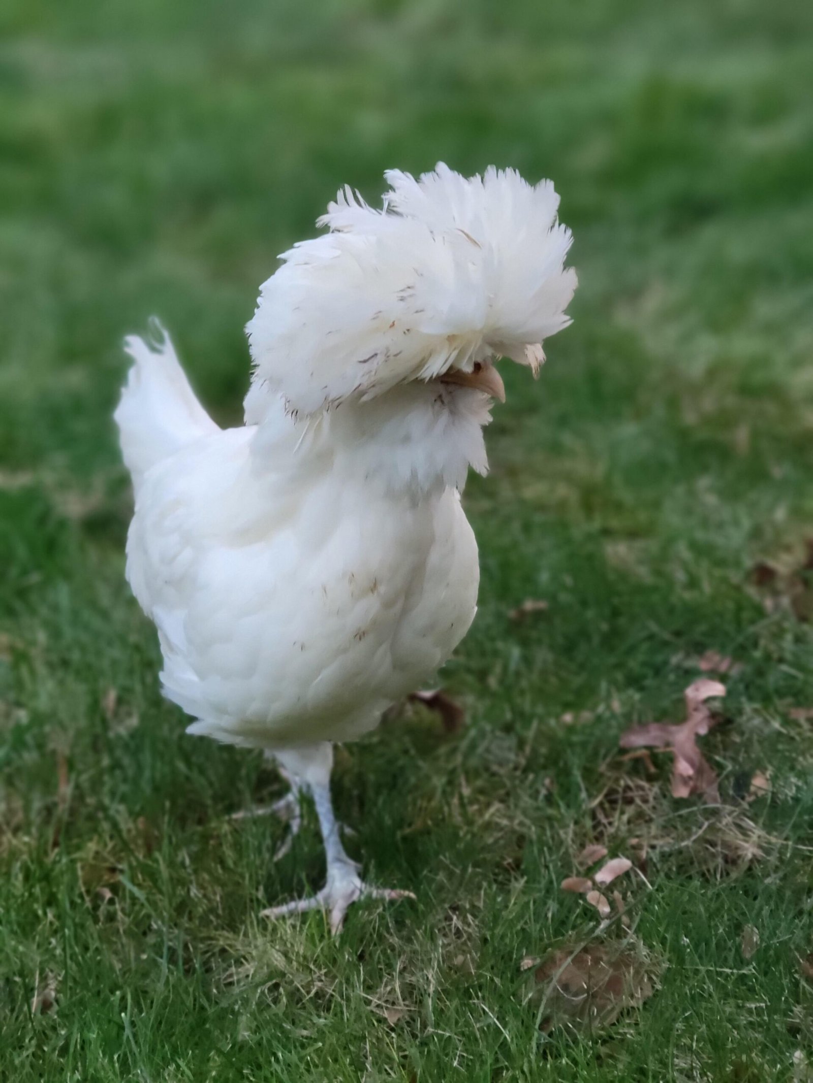 White Crested Polish Chickens are such a wonderful breed, they are very friendly and love people, they are completely wacky (in a good way) and have heaps of character. They like being handled which makes them ideal for children as pets, they are very inquisitive and will follow you around the garden and offer companionship, if you let them, they will be more than happy sat watching TV with you on the sofa!